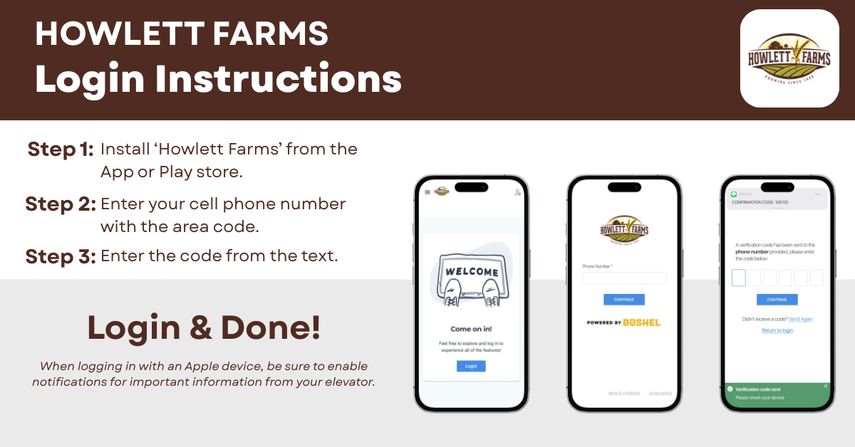 If you have any questions on how to download or are unable to access the Howlett Farms App powered by Bushel, feel free to call our office at (585) 226-8340 or stop in. One of our team would be glad to help you get started.